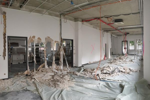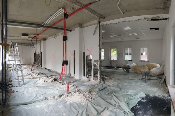 Am 25.8. war nun der Startschuss für die umfangreichen Umbauarbeiten. Es ist geplant bereits im Oktober die ersten Büroräume zu beziehen. Der Umzug unserer Warenwirtschaft und des Lagers wird Ende Oktober erfolgen, nachdem zwei neue Rowa Kommissionierautomaten sowie die Kommissionierstrecke von Axon installiert wurden.